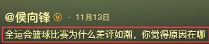 但是,对于这届全运会篮球项目的竞赛规则等等,也有不少槽点。比如说山西篮协副主席,同时也是知名篮球解说员的侯向锋侯老师,他就在全运会期间发布了一段视频,专门吐槽这届全运会篮球项目的比赛,他甚至直言不讳地说:“网络上差评很多”。