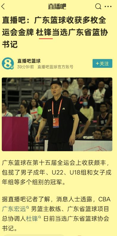 因此,作为广东男篮成年组主教练,同时也是协调全运会广东篮球各个组别各方关系融合的杜锋,据说已经正式高升了。因为杜锋让广东篮球在这届全运会上大放异彩,可以说是想拿的冠军,他们都无一落空。