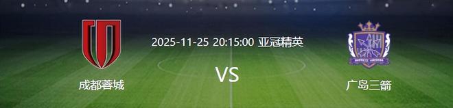 北京时间11月25日晚20:15,东亚区亚冠精英赛联赛阶段第5轮将上演一场令中国球迷无比关注的比赛,在中超争冠中折戟沉沙的成都蓉城坐镇主场迎战日本劲旅广岛三箭。