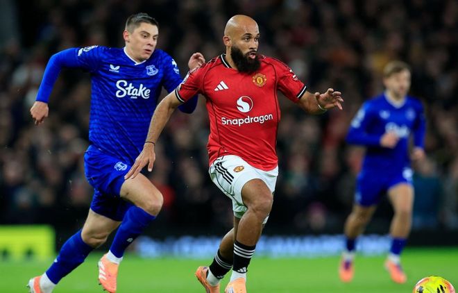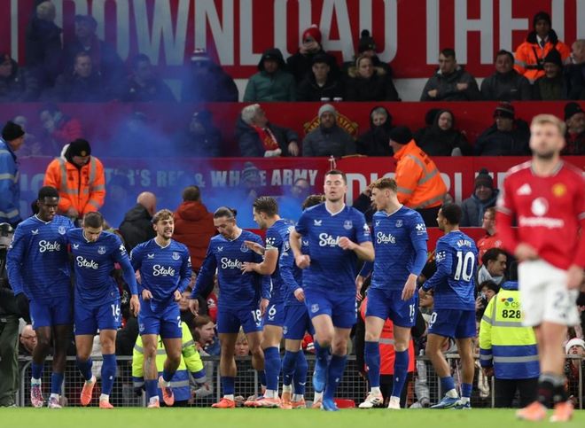 比赛刚开始10分钟,埃弗顿就遭遇伤病问题,科尔曼受伤无法坚持被换下,奥布赖恩替补上场。3分钟后,埃弗顿再遭重创,伊德里萨-盖伊与队友发生冲突被红牌罚下,真是太奇葩了。埃弗顿不得不少一人作战。不过,人数劣势的埃弗顿却率先进球了。第29分钟,霍尔带球突破,在禁区线上他起脚兜射,皮球像炮弹一样钻入球门。曼联轰然倒下!阿莫林不敢相信。