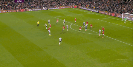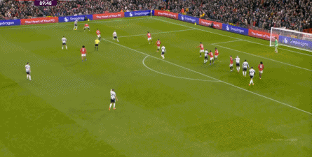 至于如此调整的原因,往好了想,你可以认为阿莫林预判到了最后要冲上30分钟的纽卡斯尔还是会用边路传中,中路争顶的方式,所以在此之前,阿莫林就先把门前的身体布置好,把外围宽度也覆盖上,尽力阻挠纽卡斯尔的进攻套路。