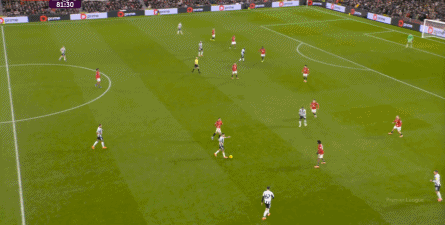 实际上,如果你认为上半场的曼联还是343,只是在结构和站位上稍微有些不符常规,那么这个换人其实会更好理解,因为在约罗换下卡塞米罗之后,曼联正式变阵为442:
