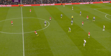 几次折腾下来,曼联甚至打出了纽卡斯尔的弱势和胆怯,从而在前场有了打阵地战的环境:
